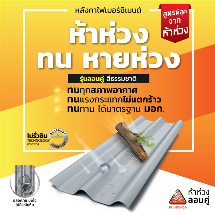 หลังคาห้าห่วง ลอนคู่ กระเบื้องหลังคาตัวเลือกที่ได้รับความนิยมสูง ด้วยดีไซน์ลอนคู่ที่ให้ความแข็งแรง ทนทาน และสวยงามทันสมัย ติดตั้งง่าย และช่วยป้องกับการรั่วซึมได้อย่างมีประสทธิภาพ เหมาะสำหรับบ้าน พักอาศัย อาคารพาณิชย์ และโรงงานที่ต้องการหลังคาที่มั่นใจได้ทั้งในด้านคุณภาพและดีไซน์เสริมความเหนือระดับด้วยนวัตกรรมระดับสากล โครงสร้างเนื้อหลังค่ามีความเหนียวแน่น ทนต่อแรงกระแทกจากลูกเห็นได้มากขึ้นถึง 3 เท่า มีให้เลือกหลายเฉดสีทั้งโทนสิแพลกดินัมและสีสไตล์โมเดิร์นที่ละท้อนความทันสมัย เพิ่มเสนท์ให้ตัวบ้านดูโดดเด่นเหนือใคร ให้ทุกหลังคาคงทนและสวยงามยาวนานกว่าที่เคย