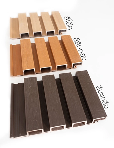 Wood Plastic Panel วัสดุสังเคราะห์ที่ผลิตขึ้นจากการผสมผสานระหว่างไม้ธรรมชาติและพลาสติกเข้าด้วยกันโดย ผ่านกระบวนการขึ้นรูปด้วยเทคโนโลยีเฉพาะ เคลือบผิวภายนอกด้วย ASA